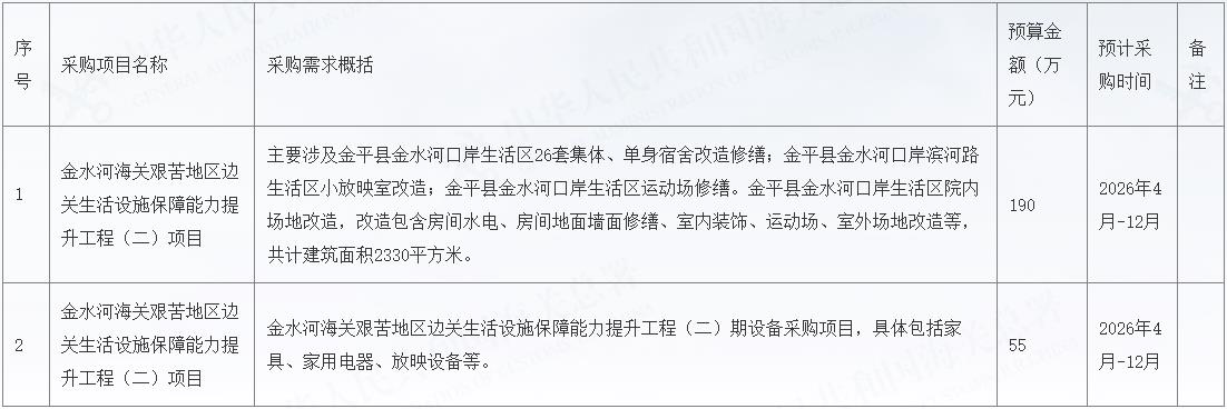 昆明海关所属金水河海关2026年4月至12月政府采购意向公告